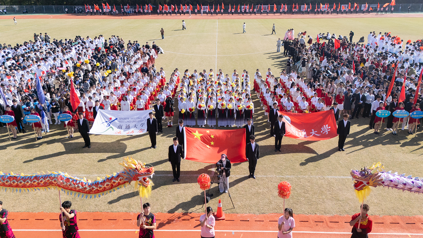 上午8点,开幕式在激昂的《运动员进行曲》中拉开帷幕。英姿飒爽的护旗方阵护送国旗、校旗、运动会会旗先后入场,红旗方阵、鲜花方阵、拉拉队方阵紧随其后。各学院方阵身着各具特色的服装,迈着铿锵有力的步伐,喊着响亮的口号依次进场。各学院学子精神抖擞,意气风发,还分别展示了精心准备的文体表演,充分展现出通大学子朝气蓬勃、多元发展的精神风貌,赢得看台上师生的阵阵掌声与喝彩。