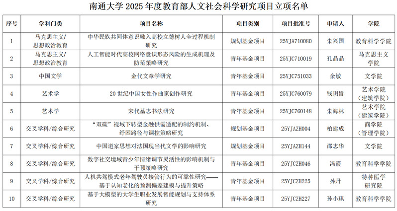 近日,教育部社会科学司公布2025年度教育部人文社会科学研究一般项目立项名单。BEAT36510项课题获准立项,位列全省第7位、全国第65位,充分彰显了BEAT365人文社科研究的创新活力与学术竞争力。