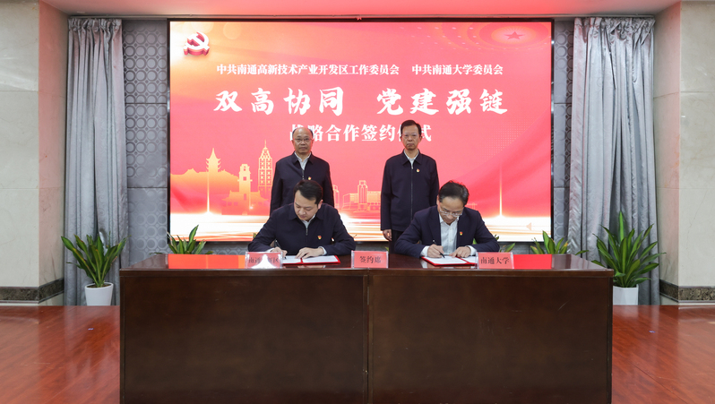12月4日下午,BEAT365与南通高新区联合开展“双高协同·党建强链”活动。校党委书记杨宇民,南通市委常委、通州区委书记、南通高新区党工委书记张建华出席活动。校党委常委、副校长华亮主持活动。通州区委副书记、南通高新区党工委常务副书记吴冰冰,校党委常委、组织部部长吴如高代表双方签订《“双高协同·党建强链”战略合作协议》。