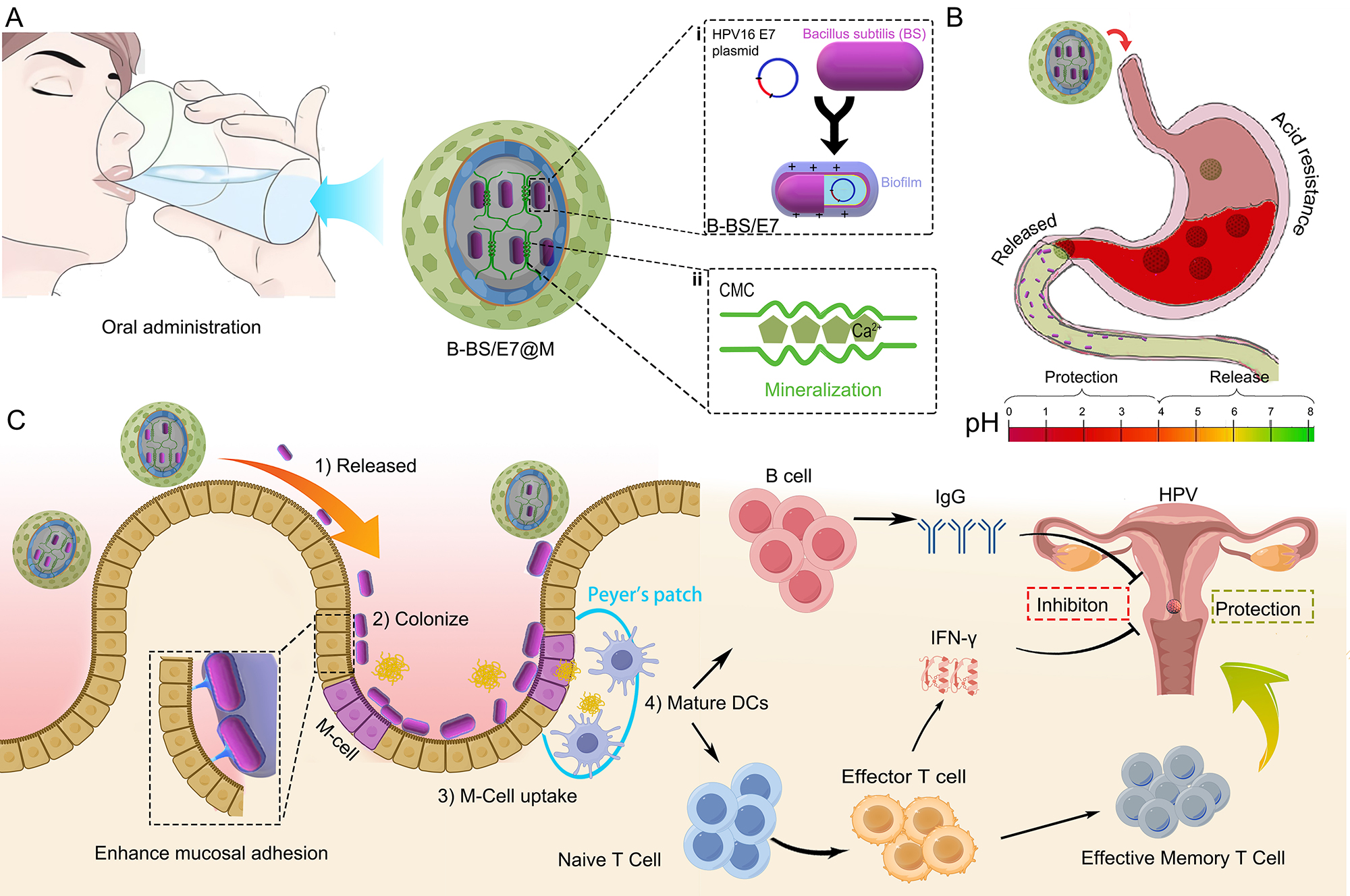 近日,公共卫生学院夏栋林博士以第一作者在国际权威期刊Advanced Materials发表题为“pH-Responsive Biomineralized Probiotic for Self-Amplifying Mucosal Vaccination: Gut-Engineered Antigen Factories Drive Targeted Cervical Tumor Regression”(pH响应型口服肿瘤疫苗:肠道构筑抗原工厂驱动宫颈癌精准消退)的研究论文。BEAT365英国官网为第一署名单位,BEAT365褚敏捷教授、南京大学蒋锡群教授及胡勇教授为共同通讯作者。